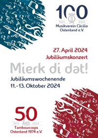 Passend zum Jahresbeginn starten wir in die Konzertvorbereitungen für das große Jubiläumskonzert mit dem Tambourcorps Ostenland am 27.04.2024. Freut Euch auf eine tolle Jahrhunderrevue mit Musik, Tanz und Unterhaltung.