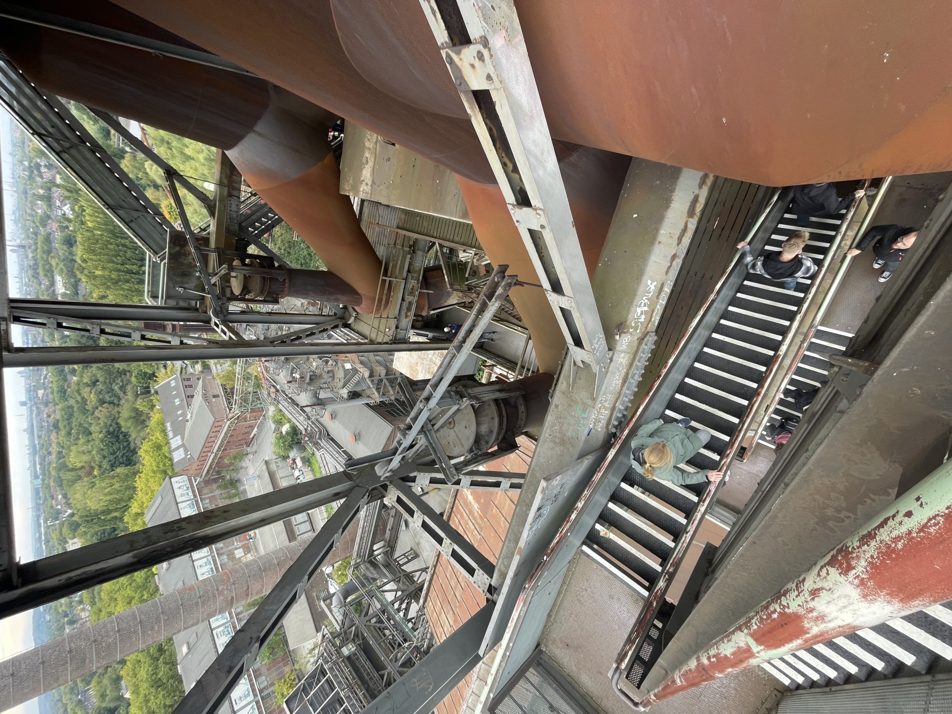 Am dritten und letzten Tag besuchten wir die Zeche Zollverein, das berühmte UNESCO-Welterbe und Symbol der Industriekultur. Zum Abschluss erklommen wir noch die Halde in Bottrop mit dem markanten Tetraeder, von wo aus man trotz des Regenwetters einen eindrucksvollen Blick über das Ruhrgebiet genießen konnte. Danach traten wir voller schöner Eindrücke die Rückfahrt an.
