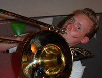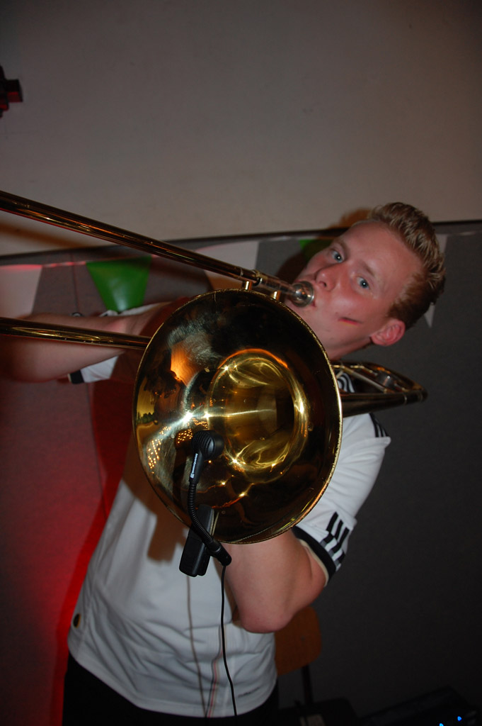 Das Foto zeigt unseren Posaunisten Daniel Wiesing auf dem Schützenfest in Oberntudorf im vergangenen Jahr. Die Musikerinnen und Musiker der BigBand Cäcilia treffen sich immer mittwochs zur Probe und Vorbereitung auf die Schützenfestsaison.