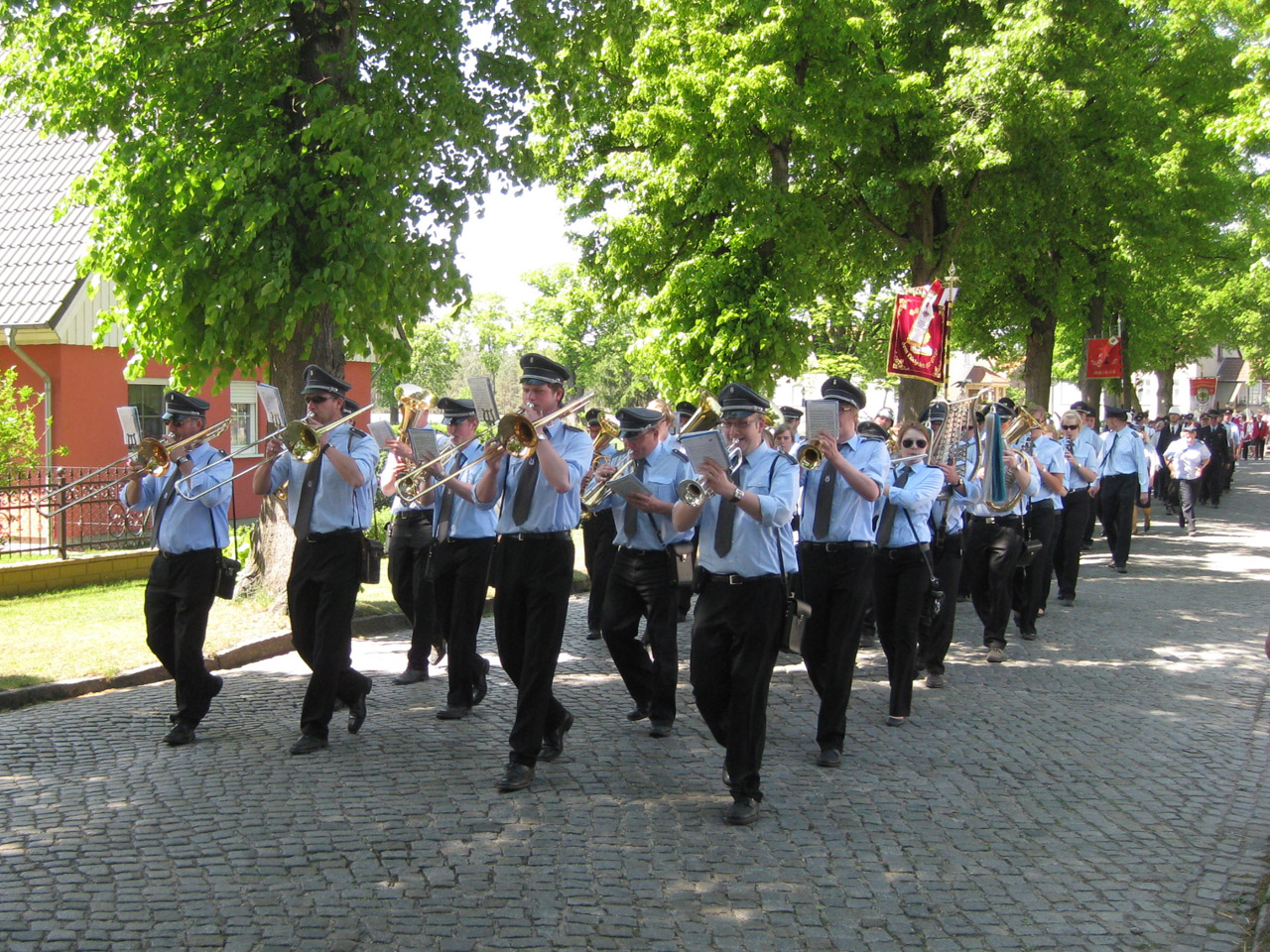 Getreu diesem Motto haben die Bewohner des Dorfes Schöneiche in Brandenburg am vergangenen Samstag gleich drei Jubiläen begannen: Neben dem 50jährigen Bestehen des Frauenchors und dem 10jährigen Bestehen der Brockenhexengemeinschaft (eines Traktorfahrerclubs) war die 20jährige Freundschaft zwischen der Feuerwehr Schöneiche und dem Löschzug Ostenland der Feuerwehr Delbrück Anlass des diesjährigen Dorffestes. In Begleitung des Tambourcorps und der Feuerwehrkameraden reiste der Musikverein „Cäcilia“ Ostenland erstmalig nach Schöneiche, um die Feierlichkeiten musikalisch zu umrahmen.