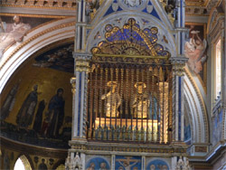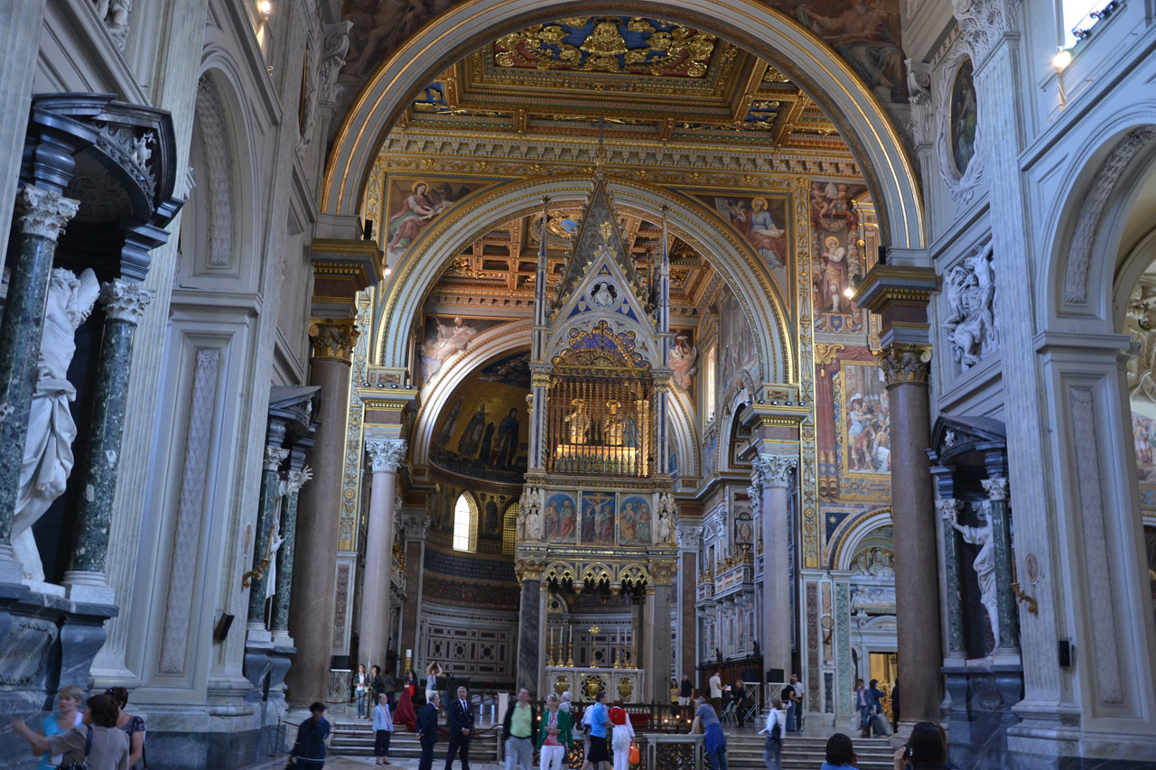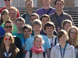 Anschließend führte uns die Reiseleitung in die römische Innenstadt, wo wir die Lateranbasilika San Giovani in Laterano besichtigten, in der bis zum 19. Jahrhundert die Päpste gekrönt wurden. Per Fuß erreichten wir die Pilgerkirche Santa Croce in Gerusalemme, die ihren Namen den in der Kirche aufbewahrten Kreuzreliquien verdant. Hier stoß die ältere Reisegruppe zu uns, die ab München mit einem anderen Flug Rom erreichte. Gemeinsam feierten wir die Heilige Messe mit Pastor Daniel Jardzejewski, der die Reise aus Anlass der Konzertandacht Weihnachten 2010 initiiert hatte. Anschließend trennten sich die Wege der Gruppen und wir erreichten mit dem Reisebus die Papstbasilika Santa Maria Maggiore, die im 5. Jahrhundert unter Papst Sixtus III. errichtet wurde. Nach dem Abendessen im Jugendhaus ließen wir unsere ersten Eindrücke noch einmal Revue passieren und schliefen voll Vorfreude ein.