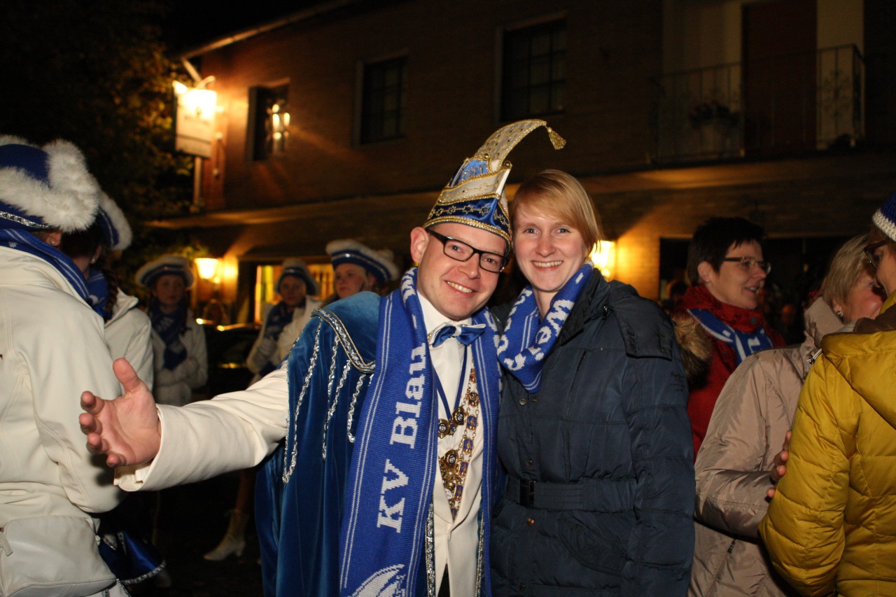 Mit gleich zwei Auftritten haben wir Musikerinnen und Musiker in der letzten Woche den Auftakt in die neue Karnevalssession 2014/2015 begleitet. Für den Dienstagabend war auf unserem Terminkalender der wöchentliche Probeabend im Pfarrheim gestrichen worden – anstelle dessen hieß es Sessionsauftakt und Mottoverkündung des Karnevalvereins Blau Weiß Ostenland an der Karnevalseiche. Nicht zuletzt weil unser Allzweckmusiker Johannes Bentler (er kann Talente auf folgenden Instrumenten vorweisen: Triangel, Drumset, Kajon, Kongas, Bongos, Tambourin, Kesselpauken, Klarinette, Tam-Tam, Cymbals) im Frühjahr zum Karnevalsprinz Johannes I. proklamiert wurde und damit den Ostenländer Narren in dieser Session vorsteht.