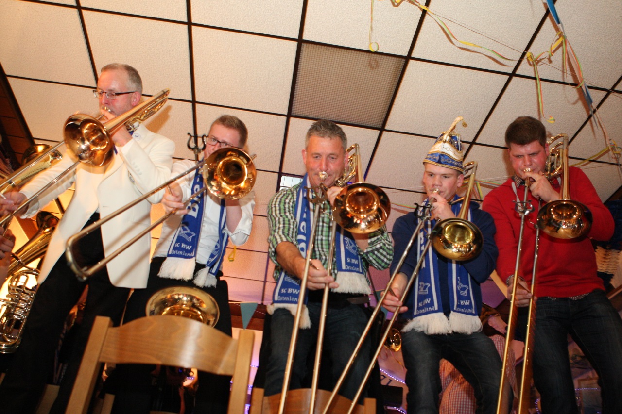 Der nächste karnevalistische Termin stand für Samstagabend auf unserem Terminkalender. Um 19.31 startete die Stadtverbandssitzung Delbrücker Karnevalisten in der Stadthalle an der Boker Straße. Mit unserer Karnevalsbesetzung trugen wir zu einem gelungenen Abend bei, dessen Programmpunkte von den Vereinen der einzelnen Orte aus dem Stadtgebiet vorbereitet wurden. In Summe lässt sich festhalten: eine sehr gelungene Mischung aus Tanz, Gesang, Akrobatik und Show machte den Abend für uns unvergesslich. Zum ersten Mal mit dabei waren unsere Nachwuchsmusiker in den Registern Klarinette, Flügelhorn, Posaune und Schlagzeug und machten ihre Sache dabei ausgesprochen gut!