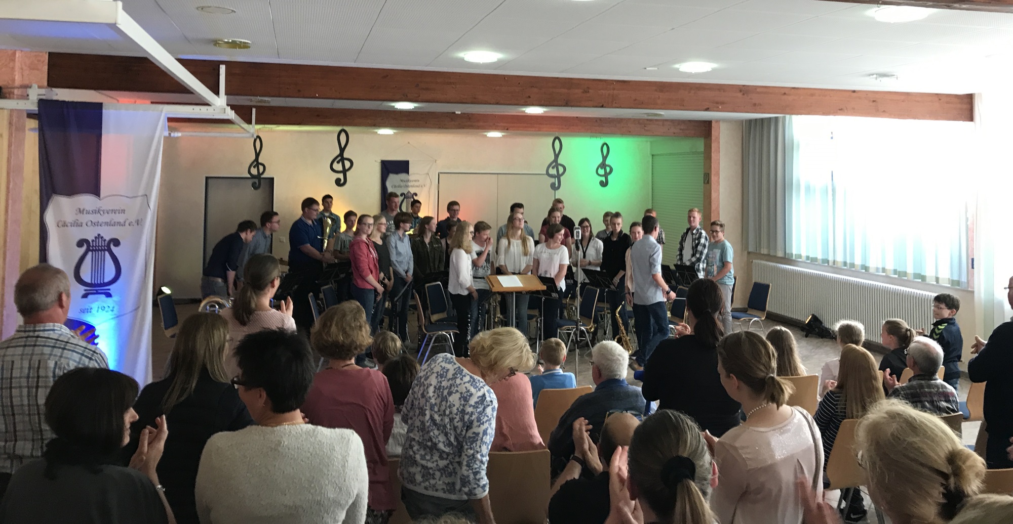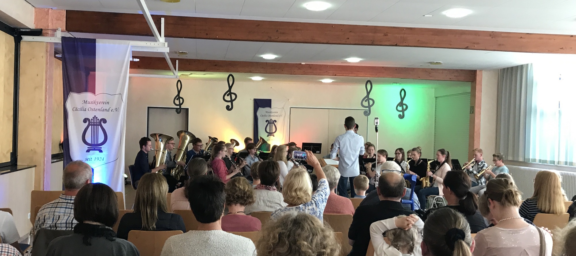Am Freitag, dem 9. Juni um 19 Uhr präsentierte das Jugendorchester des Musikvereins Cäcilia Ostenland ein Konzert unter der Leitung von Simon Querüber. Es war ein Resultat des Probewochenendes und zweier Abendproben. Dieses Konzert war den Familien, Vereinskollegen und aktiven Unterstützern gewidmet. Ziel war es, Dankeschön für das Unterstützen der Jugendlichen und dem Verein zu sagen. Dominik Berenspöhler hat souverän durch das Programm geführt und die einzelnen Stücke vorgestellt. Josef Bentler unterstützte die Musikjugend durch das Grillen von Würstchen und wir konnten somit den Abend noch gemütlich bei Getränken und guten Gesprächen ausklingen lassen.