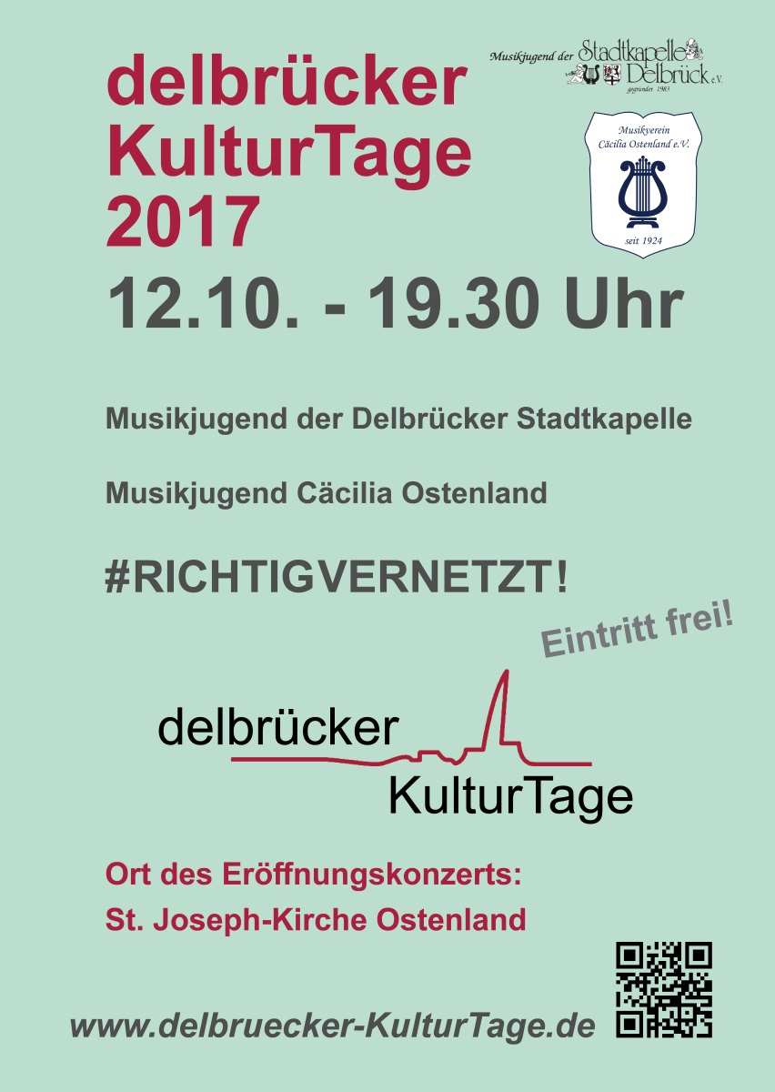 In diesem Jahr beteiligt sich unsere Musikjugend an den Delbrücker Kulturtagen. Diese besondere Aktion, welche von Konzerten und anderen musikalischen oder künstlerischen Arbeiten verschiedenster Art geprägt ist, wurde im Jahr 2015 ins Leben gerufen. Das Motto der diesjährigen Kulturtage ist „#Richtig vernetzt“.