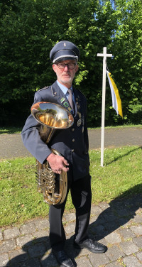 Anbei zwei Fotos unseres Auftritts zur stationären Begleitung der kurzen und kleinen Prozession im Vorfeld der heutigen Primizfeier.